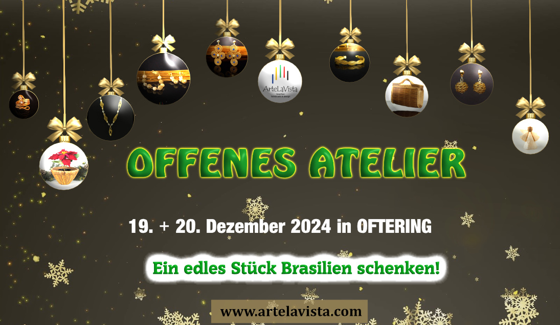 Olá Brasil! Kurz vor Weihnachten laden wir Sie wieder ganz herzlich ein, einzigartiges Brasilianisches Design in unserem Atelier in Oftering zu erleben. Falls Sie ein besonderes Geschenk für einen lieben Menschen oder natürlich für Sie selbst suchen, finden Sie bei uns ganz sicher etwas absolut Wunderbares, Außergewöhnliches und auch Exotisches.