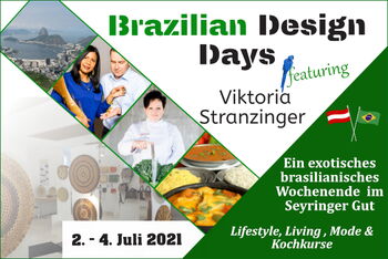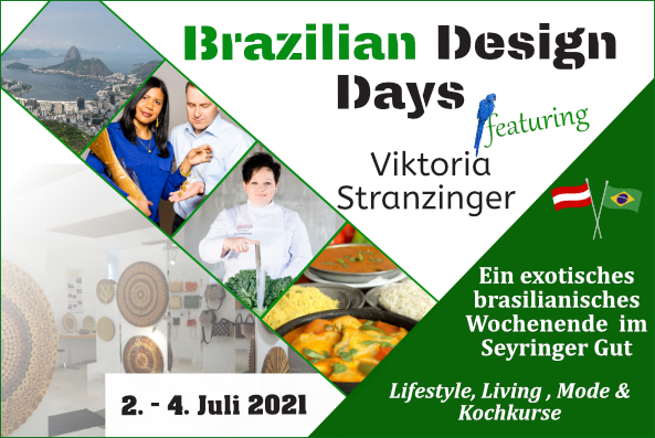 Im idyllischen Seyringer Gut bei Aurolzmünster zelebrieren wir vom 2. - 4. Juli ein ganz besonderes Event. Zusammen mit der Starköchin Viktoria Stranzinger (Gewinnerin der Kochgiganten auf Puls4) veranstalten wir ein zauberbuntes brasilianisches Erlebnis für Sie: Die "Brazilian Design Days featuring Viktoria Stranzinger".