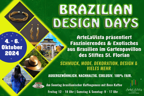 Nach einem Jahr Pause gastieren die "Brazilian Design Days" vom 4. - 6. Oktober erneut im wundervollen Gartenpavillon des Stiftes Sankt Florian. Mitten im Goldenen Herbst lädt ArteLaVista Sie herzlichst ein zu einem exklusiven und europaweit einmaligen Event.
