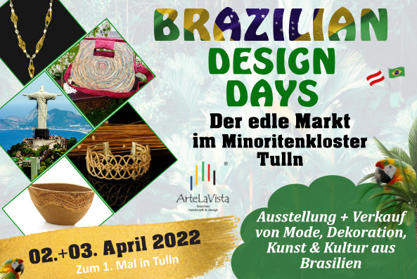 Die "Brazilian Design Days" feiern heuer ihre Premiere in der Gartenhauptstadt Tulln. Im April präsentieren wir zum 1. Mal unser brasilianisches Event im historischen Minoritenkloster. Der stilvolle Minoritensaal bietet dafür eine traumhafte Kulisse.